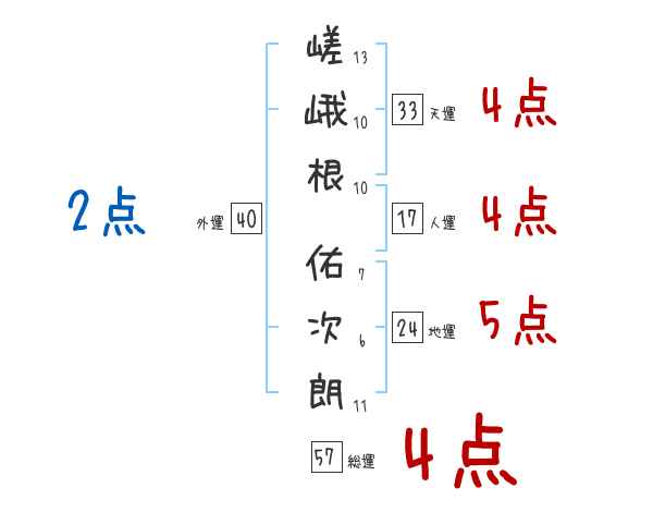 嵯峨根佑次朗さんの画数の鑑定結果