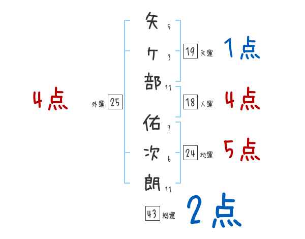 矢ヶ部佑次朗さんの画数の鑑定結果