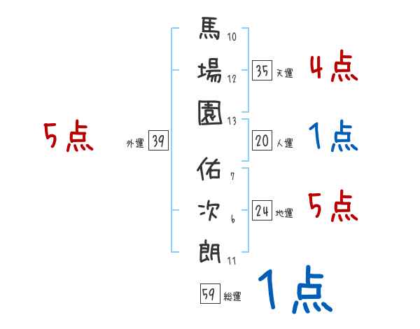 馬場園佑次朗さんの画数の鑑定結果