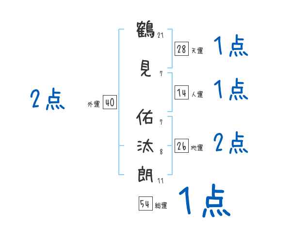 天運![]() | 鶴見佑汰朗さんの天運は28画の1つ星!家庭環境に注意。スポーツで活躍できる能力があるかも。 家系が持つ宿命的な運勢を表します。祖先から受け継いだ苗字ですので自分の力が及びません。家柄を象徴します。 |