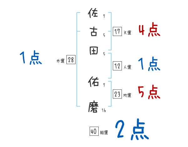 外運![]() | 佐古田佑磨さんの外運は28画の1つ星!家庭環境に注意。スポーツで活躍できる能力があるかも。 生活面を象徴する運勢です。外部から受ける影響力を表し、結婚運、家庭運や職場、環境への順応性を表します。 |