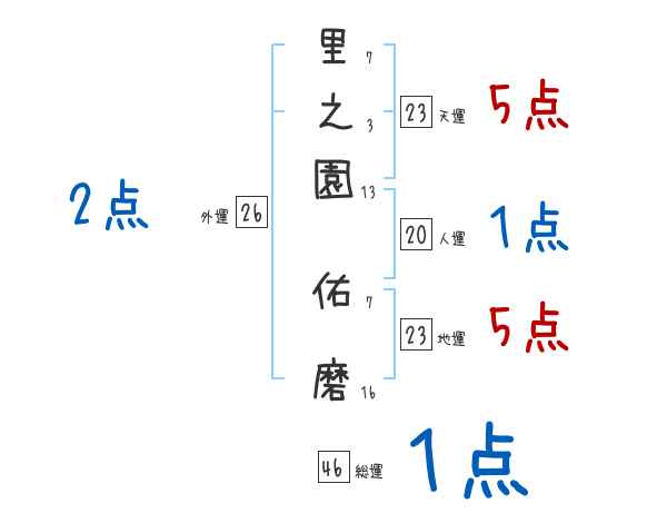 里之園佑磨さんの画数の鑑定結果