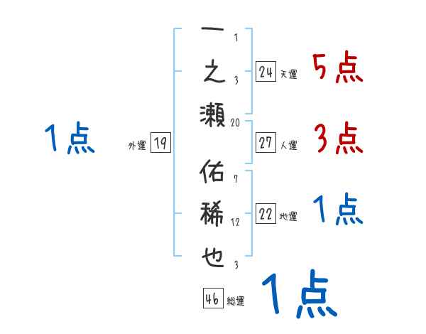 一之瀬佑稀也さんの画数の鑑定結果