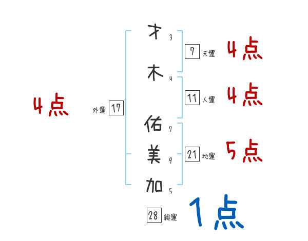 天運![]() | 才木佑美加さんの天運は7画の4つ星!強い意志や信念を持ち独立心が強い。自立する。 家系が持つ宿命的な運勢を表します。祖先から受け継いだ苗字ですので自分の力が及びません。家柄を象徴します。 |