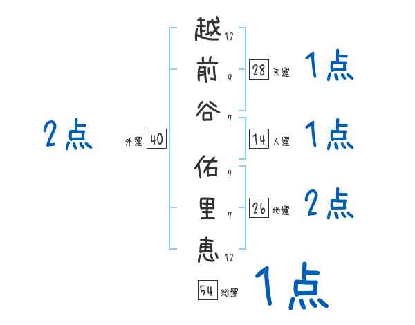 越前谷佑里恵さんの画数の鑑定結果
