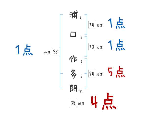 外運![]() | 浦口作多朗さんの外運は28画の1つ星!家庭環境に注意。スポーツで活躍できる能力があるかも。 生活面を象徴する運勢です。外部から受ける影響力を表し、結婚運、家庭運や職場、環境への順応性を表します。 |