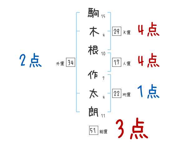 駒木根作太朗さんの画数の鑑定結果