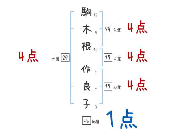 駒木根作良子さんの外運は29画の4つ星