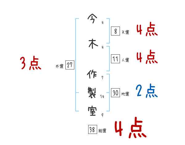 今木作製室さんの画数の鑑定結果