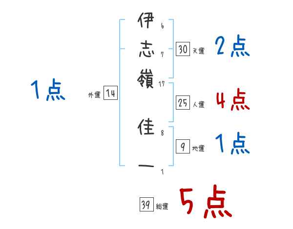 外運![]() | 伊志嶺佳一さんの外運は14画の1つ星!人に対して優しいがストレスを溜め込みがち。人間関係のトラブルを避けるよう気をつけましょう。 生活面を象徴する運勢です。外部から受ける影響力を表し、結婚運、家庭運や職場、環境への順応性を表します。 |