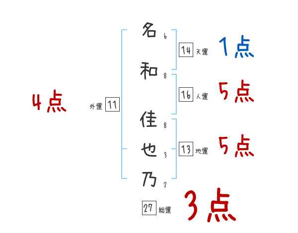 天運![]() | 名和佳也乃さんの天運は14画の1つ星!人に対して優しいがストレスを溜め込みがち。人間関係のトラブルを避けるよう気をつけましょう。 家系が持つ宿命的な運勢を表します。祖先から受け継いだ苗字ですので自分の力が及びません。家柄を象徴します。 |