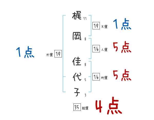 総運![]() | 梶岡佳代子さんの総運は35画の4つ星!温厚な性格で感受性が高い。穏和な性格で人望が厚い。 あなたの人生を表す1番重要な運勢です。生涯を通じて影響する総合運となり、主に50歳以降の晩年期に影響を及ぼします。 |