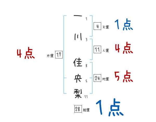 一川佳央梨さんの画数の鑑定結果