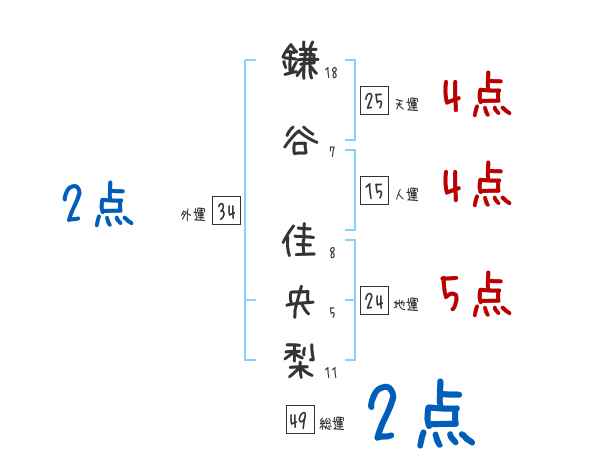 人運![]() | 鎌谷佳央梨さんの人運は15画の4つ星!人徳があり出世する。順調に物事を進め円満な人生。 性格や才能などを表す2番目に重要な運勢です。人間関係や協調性、社会的な成功に影響します。主に20歳から50歳ぐらいまでの中年期の運勢を表します。 |
