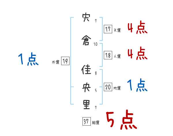 天運![]() | 宍倉佳央里さんの天運は17画の4つ星!積極的な行動力。地位を気づき財産を手に入れる。純粋な心と直感力。 家系が持つ宿命的な運勢を表します。祖先から受け継いだ苗字ですので自分の力が及びません。家柄を象徴します。 |