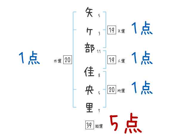 天運![]() | 矢ヶ部佳央里さんの天運は19画の1つ星!優れた才能を持ちますが、協調性が足りないことも。周りの人と協力する事を意識しましょう。 家系が持つ宿命的な運勢を表します。祖先から受け継いだ苗字ですので自分の力が及びません。家柄を象徴します。 |
