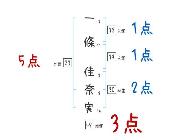 外運![]() | 一條佳奈実さんの外運は23画の5つ星!想像力に優れ活力がある。一代で成功し名誉を手に入れる。 生活面を象徴する運勢です。外部から受ける影響力を表し、結婚運、家庭運や職場、環境への順応性を表します。 |