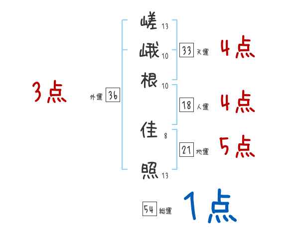 嵯峨根佳照さんの画数の鑑定結果