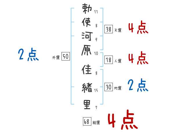 天運![]() | 勅使河原佳緒里さんの天運は38画の4つ星!温厚な性格で技術的な才能を発揮する。職人的な仕事に向いている。 家系が持つ宿命的な運勢を表します。祖先から受け継いだ苗字ですので自分の力が及びません。家柄を象徴します。 |