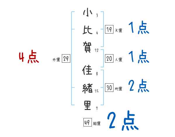 小比賀佳緒里さんの画数の鑑定結果