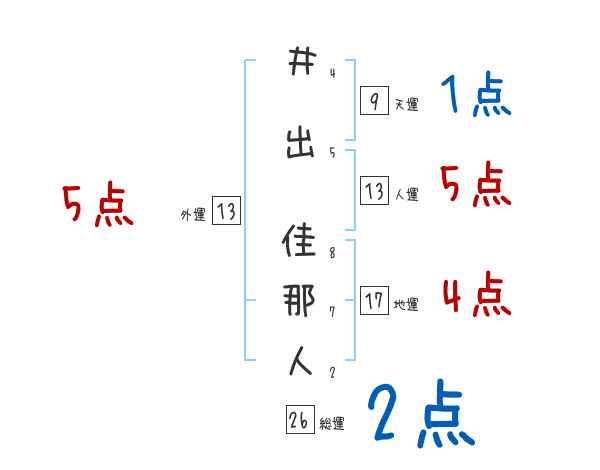 天運![]() | 井出佳那人さんの天運は9画の1つ星!消極的で才能を発揮することが苦手なことも。周りの意見に耳を傾けましょう。 家系が持つ宿命的な運勢を表します。祖先から受け継いだ苗字ですので自分の力が及びません。家柄を象徴します。 |