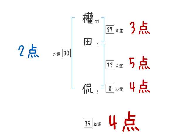 權田侃さんの画数の鑑定結果