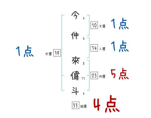今仲來偉斗さんの画数の鑑定結果