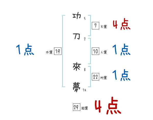 功刀來夢さんの画数の鑑定結果