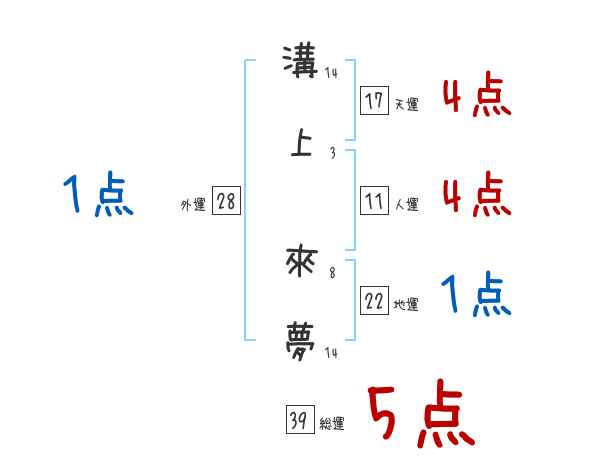 天運![]() | 溝上來夢さんの天運は17画の4つ星!積極的な行動力。地位を気づき財産を手に入れる。純粋な心と直感力。 家系が持つ宿命的な運勢を表します。祖先から受け継いだ苗字ですので自分の力が及びません。家柄を象徴します。 |