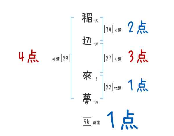 稲辺來夢さんの画数の鑑定結果