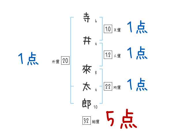 寺井來太郎さんの画数の鑑定結果