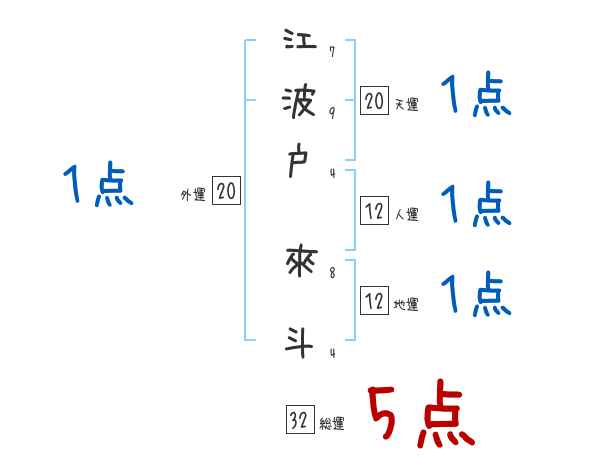 総運![]() | 江波戸來斗さんの総運は32画の5つ星!柔軟性があり成功する。チャンスが多く金運が良い。 あなたの人生を表す1番重要な運勢です。生涯を通じて影響する総合運となり、主に50歳以降の晩年期に影響を及ぼします。 |