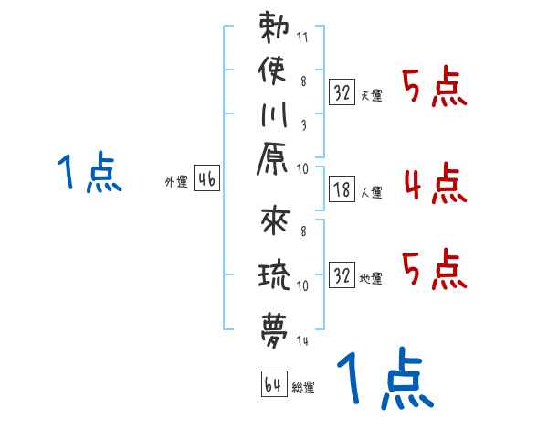 天運![]() | 勅使川原來琉夢さんの天運は32画の5つ星!柔軟性があり成功する。チャンスが多く金運が良い。 家系が持つ宿命的な運勢を表します。祖先から受け継いだ苗字ですので自分の力が及びません。家柄を象徴します。 |