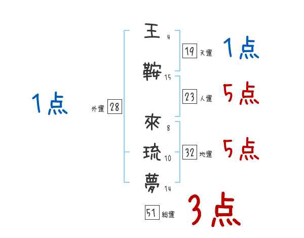 王鞍來琉夢さんの画数の鑑定結果