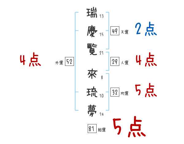 瑞慶覧來琉夢さんの画数の鑑定結果