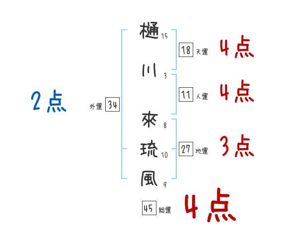 樋川來琉風さんの画数の鑑定結果