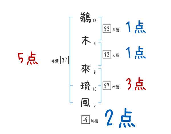 鵜木來琉風さんの画数の鑑定結果