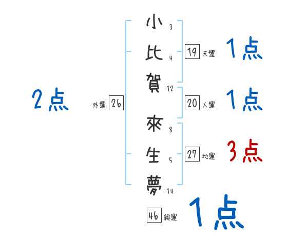 小比賀來生夢さんの画数の鑑定結果