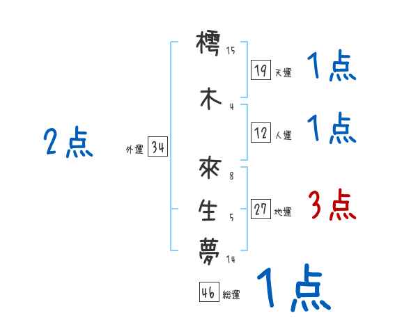 天運![]() | 樗木來生夢さんの天運は19画の1つ星!優れた才能を持ちますが、協調性が足りないことも。周りの人と協力する事を意識しましょう。 家系が持つ宿命的な運勢を表します。祖先から受け継いだ苗字ですので自分の力が及びません。家柄を象徴します。 |