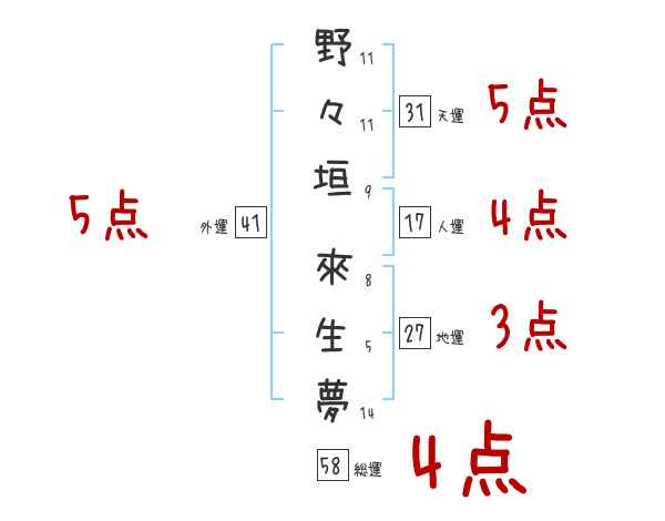 野々垣來生夢さんの画数の鑑定結果
