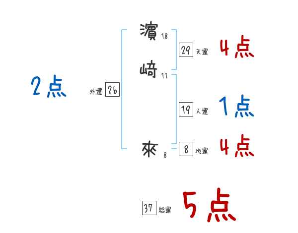 濵﨑來さんの画数の鑑定結果