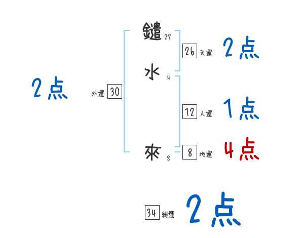 鑓水來さんの画数の鑑定結果