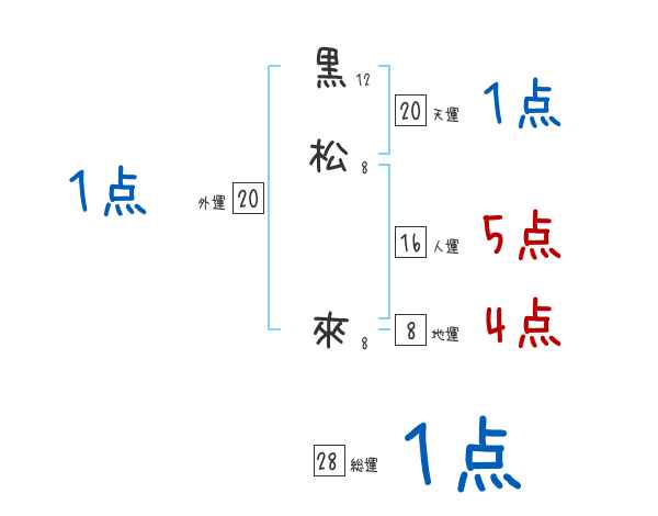 黒松來さんの画数の鑑定結果