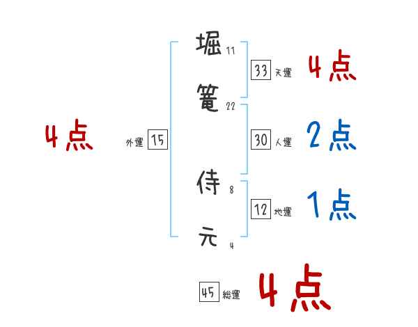 堀篭侍元さんの画数の鑑定結果