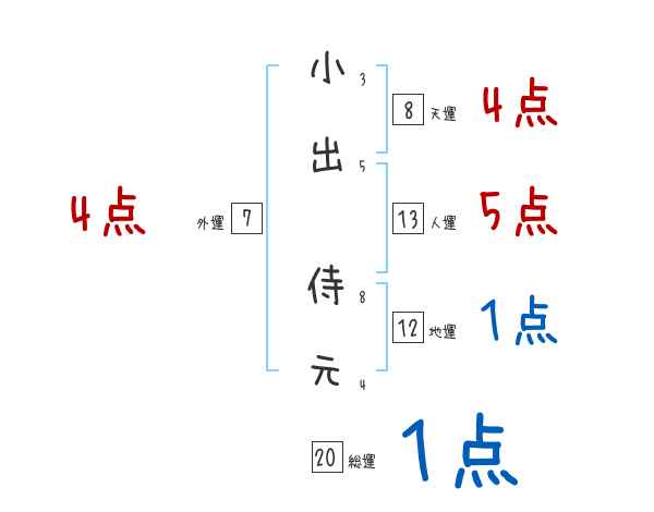 小出侍元さんの画数の鑑定結果