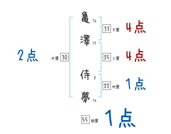 亀澤侍夢さんの画数の鑑定結果