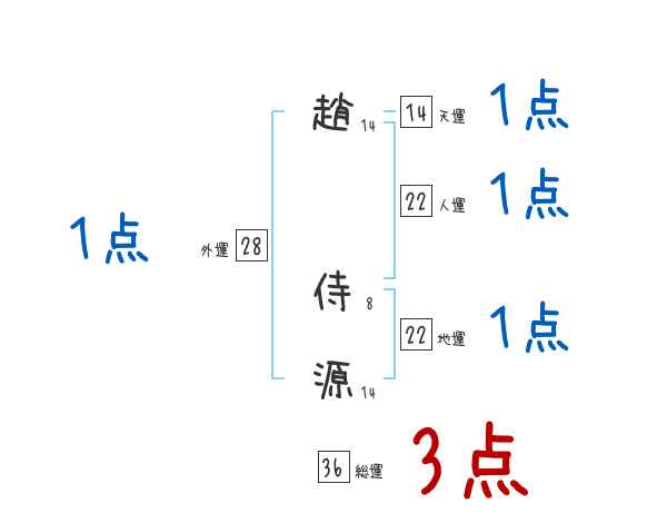天運![]() | 趙侍源さんの天運は14画の1つ星!人に対して優しいがストレスを溜め込みがち。人間関係のトラブルを避けるよう気をつけましょう。 家系が持つ宿命的な運勢を表します。祖先から受け継いだ苗字ですので自分の力が及びません。家柄を象徴します。 |