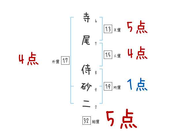 寺尾侍砂二さんの画数の鑑定結果