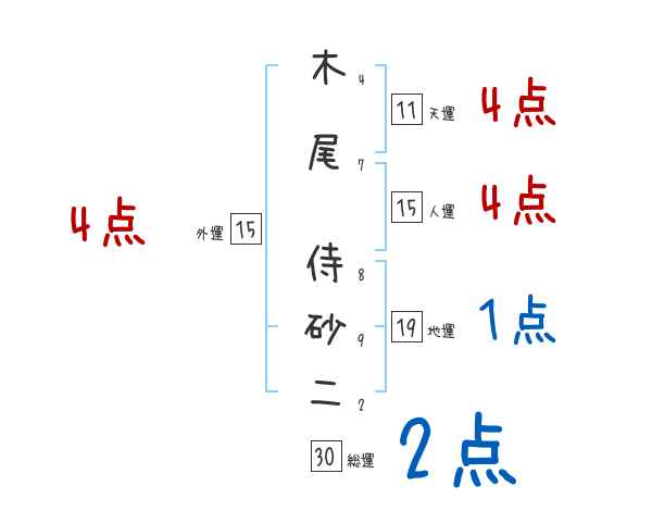 木尾侍砂二さんの画数の鑑定結果