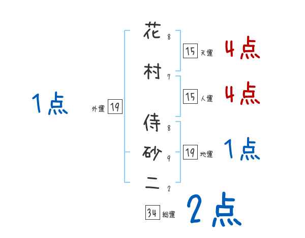 天運![]() | 花村侍砂二さんの天運は15画の4つ星!人徳があり出世する。順調に物事を進め円満な人生。 家系が持つ宿命的な運勢を表します。祖先から受け継いだ苗字ですので自分の力が及びません。家柄を象徴します。 |